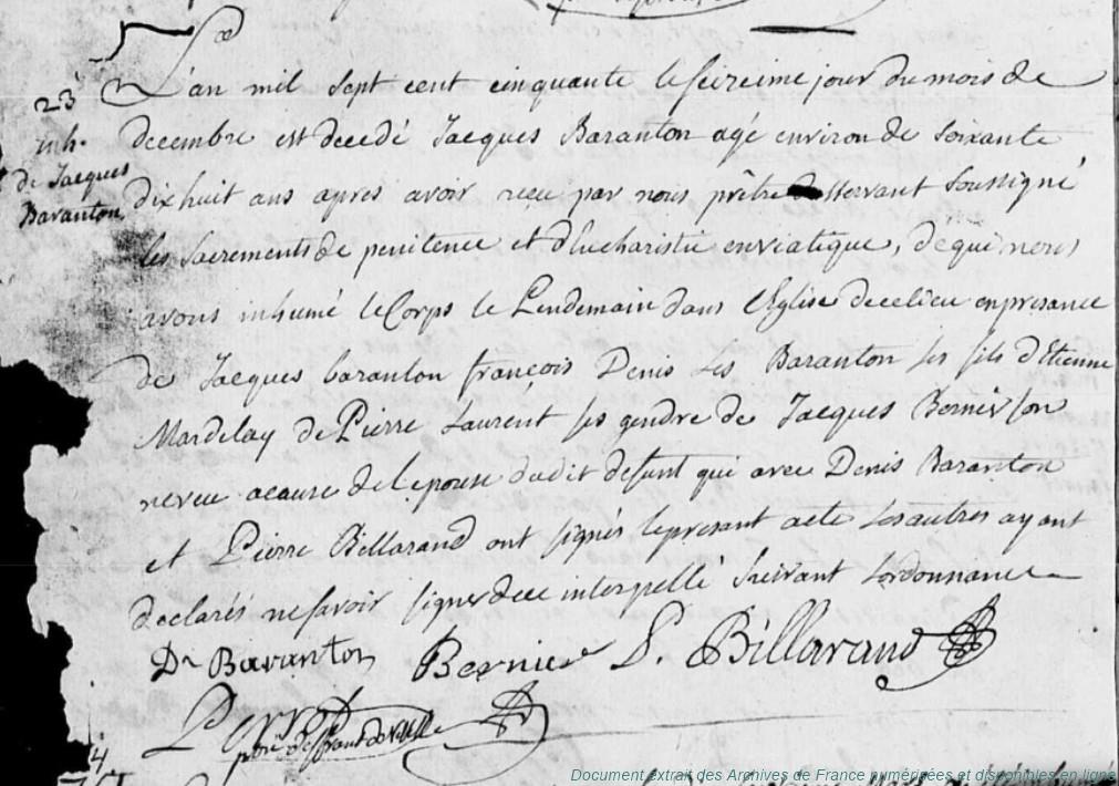 C - BARANTON Julien (° évalué à 1673, + 30/07/1751 à Vierville - 28)