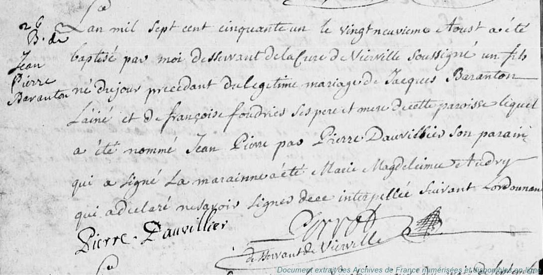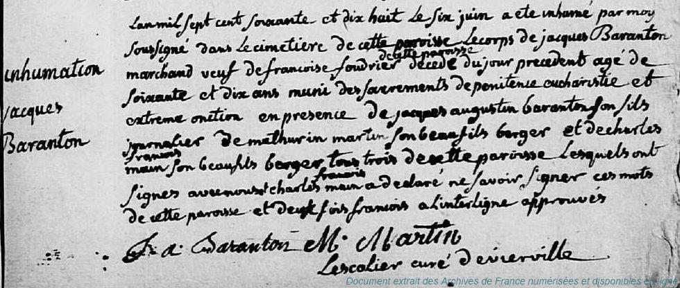 DF - BARANTON Jean (° 6/02/1718 à Vierville - 28)