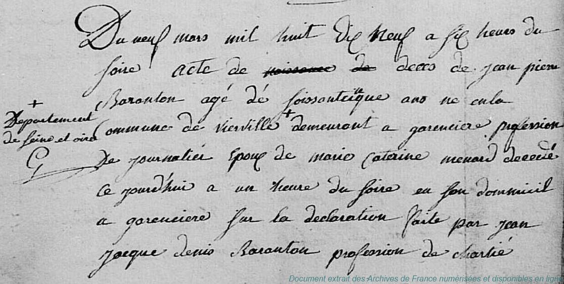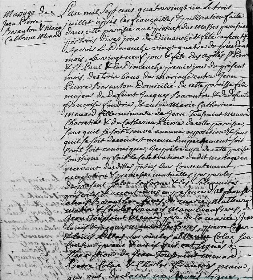 BAF - BARANTON Jean-Pierre (° 28/08/1751 à Vierville - 28, + 9/03/1819 à Garancières-en-Beauce - 28) - MENARD Marie Catherine (° 27/06/1758 à Garancières-en-Beauce - 28, + 20/01/1832 à Garancières-en-Beauce - 28) (x 3/07/1781 à Garancières-en-Beauce - 28)