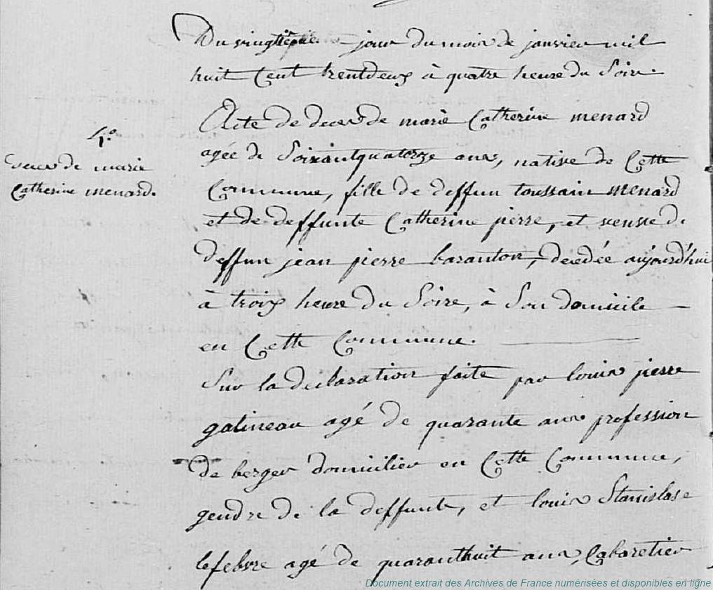 BAA - BARANTON Jacques Augustin (° 3/03/1741 à Vierville - 28, + 13/01/1810 à Vierville - 28) - GASTINEAU Marie Marguerite (° 1745, + 12/09/1826 à Vierville - 28) (x 15/06/1767 à Vierville - 28)