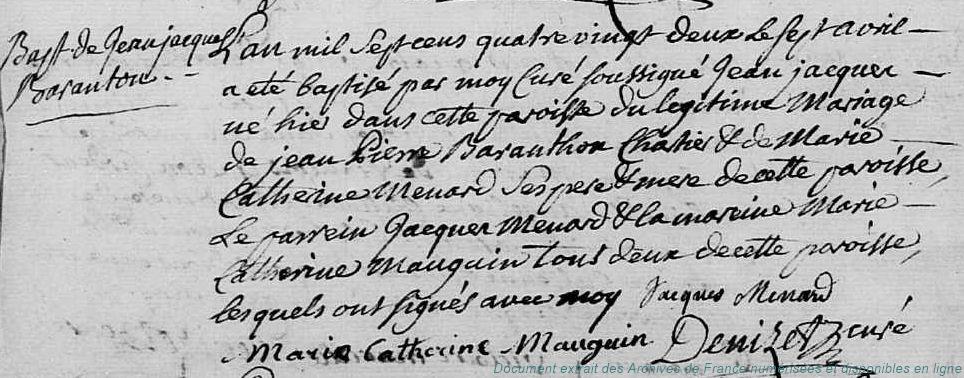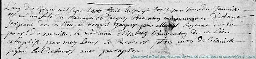 BCA - BARANTON Jacques François (° 11/11/1740 à Sainville - 28, + 12/11/1740 à Sainville - 28)