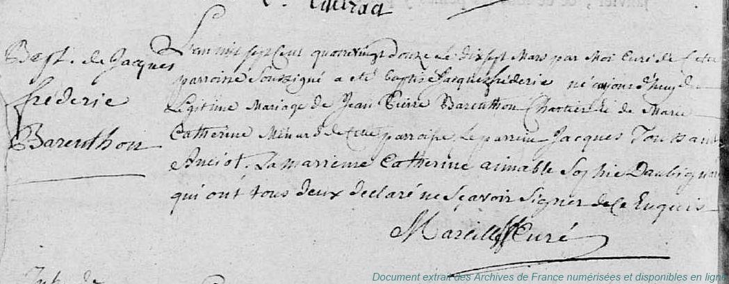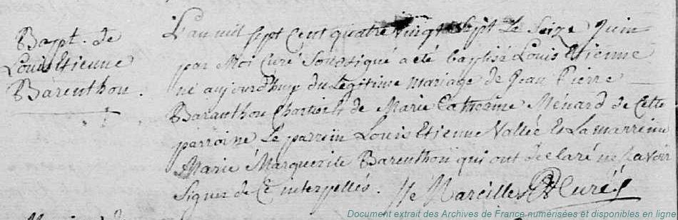 BF - BARANTON (° 22/04/1721 à Vierville - 28)
