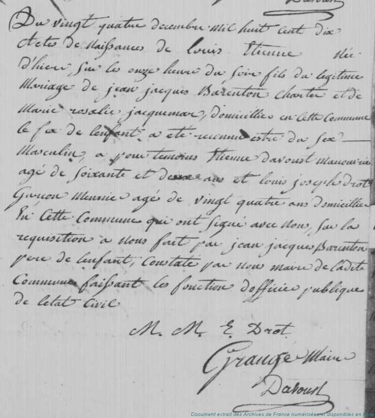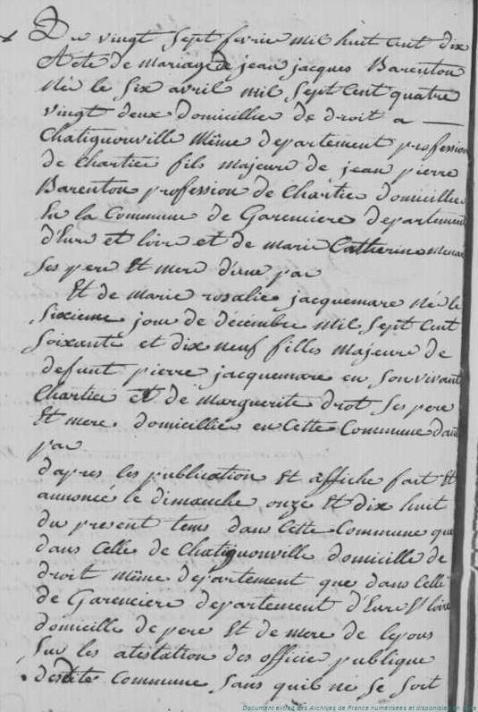 BAFA - BARANTON Jean-Jacques Denis (° 6/04/1782 à Garancières-en-Beauce - 28, + 29/03/1849 à Chalou-Moulineux - 91) - JACQUEMARE Marie Rosalie (° 6/12/1779 à Chalou-Moulineux - 91, + 26/11/1856 à Chalou-Moulineux - 91) (x 27/02/1810 à Chalou-Moulineux - 91)
