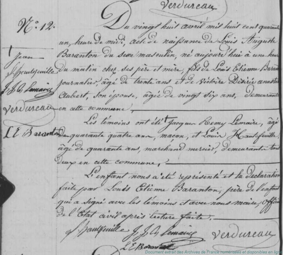 BAC2F - BARANTON Pierre Alphonse (° 25/01/1796 à Garancières-en-Beauce - 28, + 18/02/1848 à Aunay-sous-Auneau - 28) - LEJARS Marie Francoise Julie (° 1/03/1794 à Aunay-sous-Auneau - 28) (x 10/04/1820 à Aunay-sous-Auneau - 28)