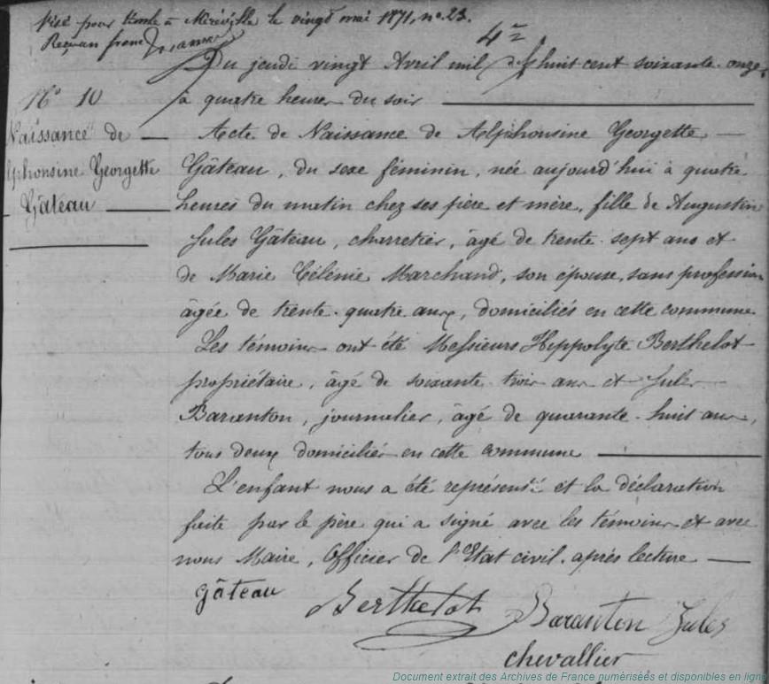 BAFAAB - BARANTON Louis Auguste (° 28/04/1841 à Chalou-Moulineux - 91, + 11/11/1904 à Chalou-Moulineux - 91) - MEUNIER Julie Armandine (° 16/07/1850 à Monnerville - 91, + après 1904) (x 9/05/1870 à Monnerville - 91)