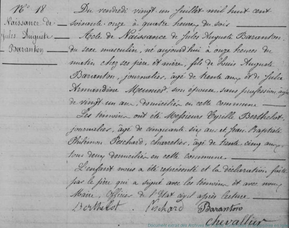 BAFDB0 - BARANTON Auguste Désiré Philéas (° évalué à 1850)