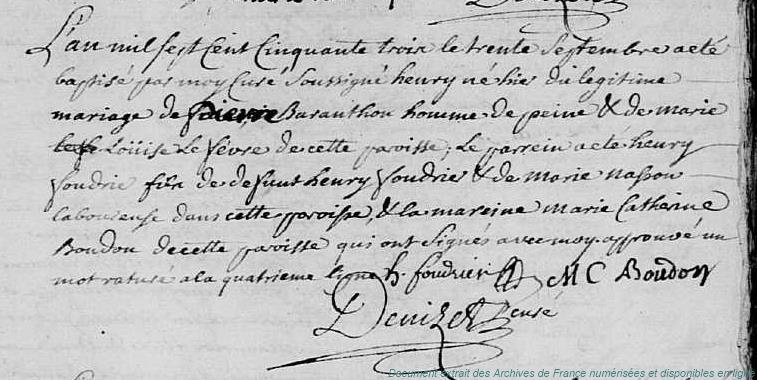 DB - BARANTON Denis (° 9/01/1711 à Vierville - 28, + 1736)